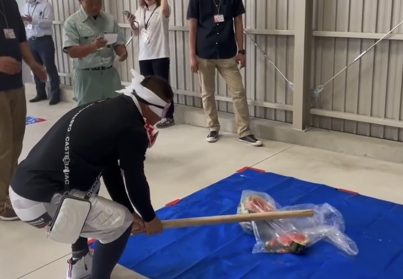 その場のハイライトは、なんといっても本気のスイカ割りです。