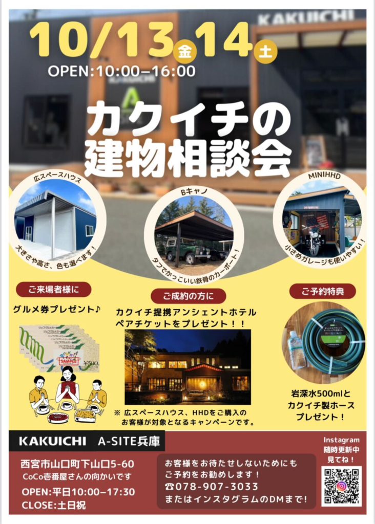 錆びにくい倉庫、鉄骨のガレージはカクイチ A-SITE兵庫 10月イベント