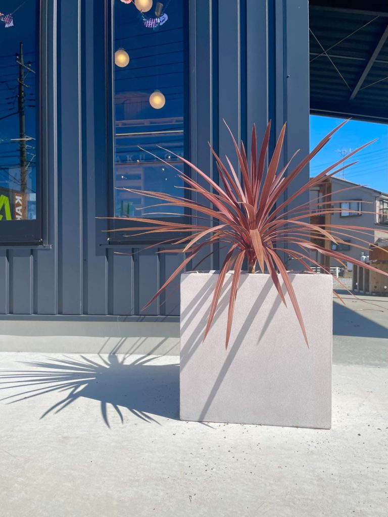 お客様のことを思う我々スタッフが、先日植木が枯れてしまった展示棟前に新たなドラセラナのコルジリネを設置しました。
