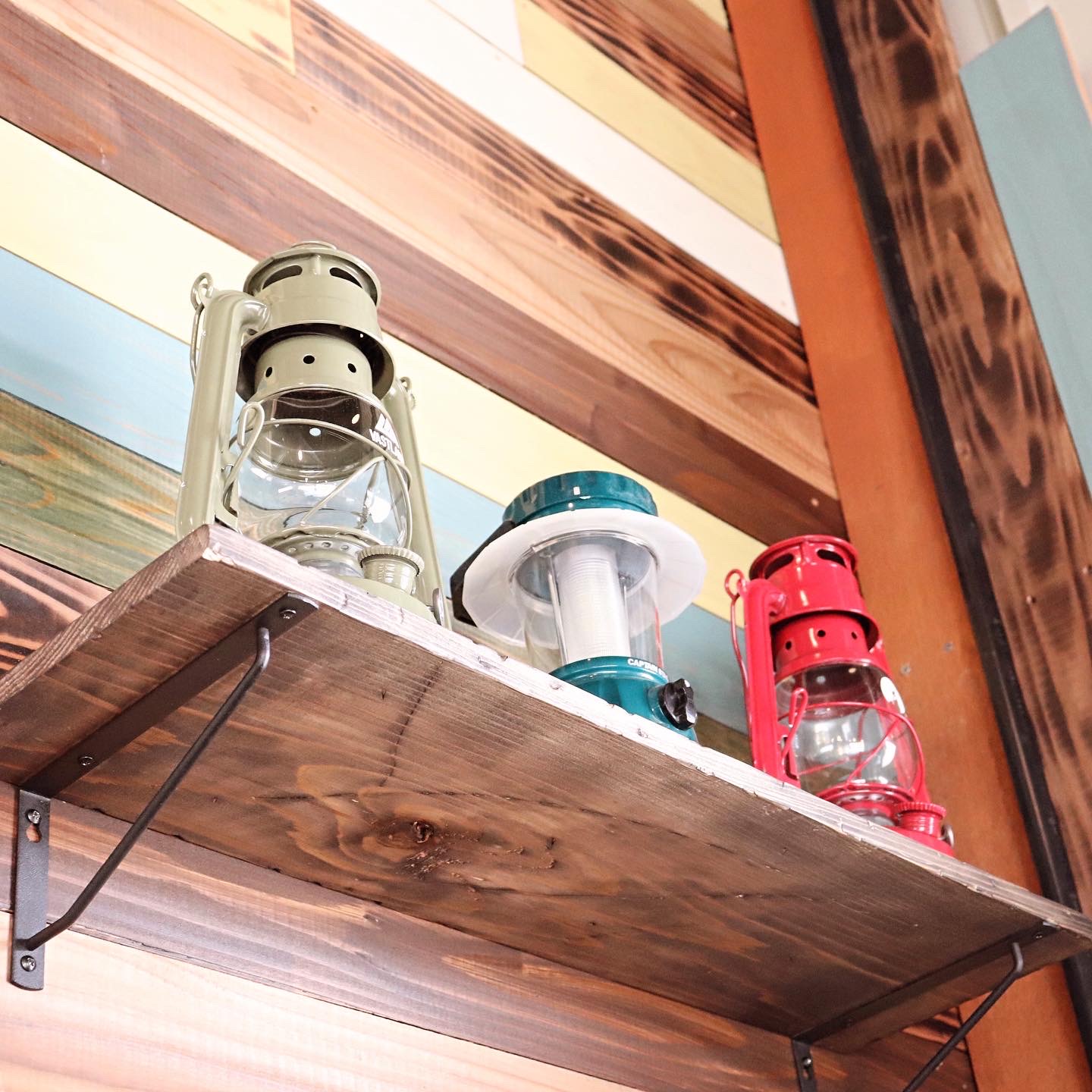 全体的にログハウスやキャンプをイメージし、大切な仲間や趣味の時間を大切に出来るようなディスプレイに仕上げています😆