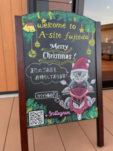 街並みはもうすっかりクリスマムード一色🎄当店もウェルカムボードをクリスマスに衣替えしました。