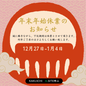 A-SITE郡山店の年末年始の休業日のお知らせです。