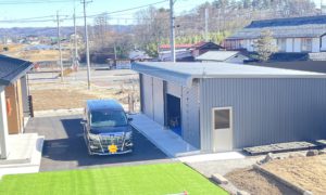 澄んだ空気のなか、新築のご自宅と広スペースハウスKSW-4035型が