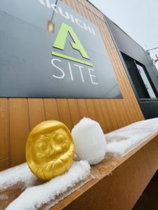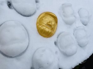 うっすら積もったのでだるま弁当の容器を使って雪だるまを作りました!