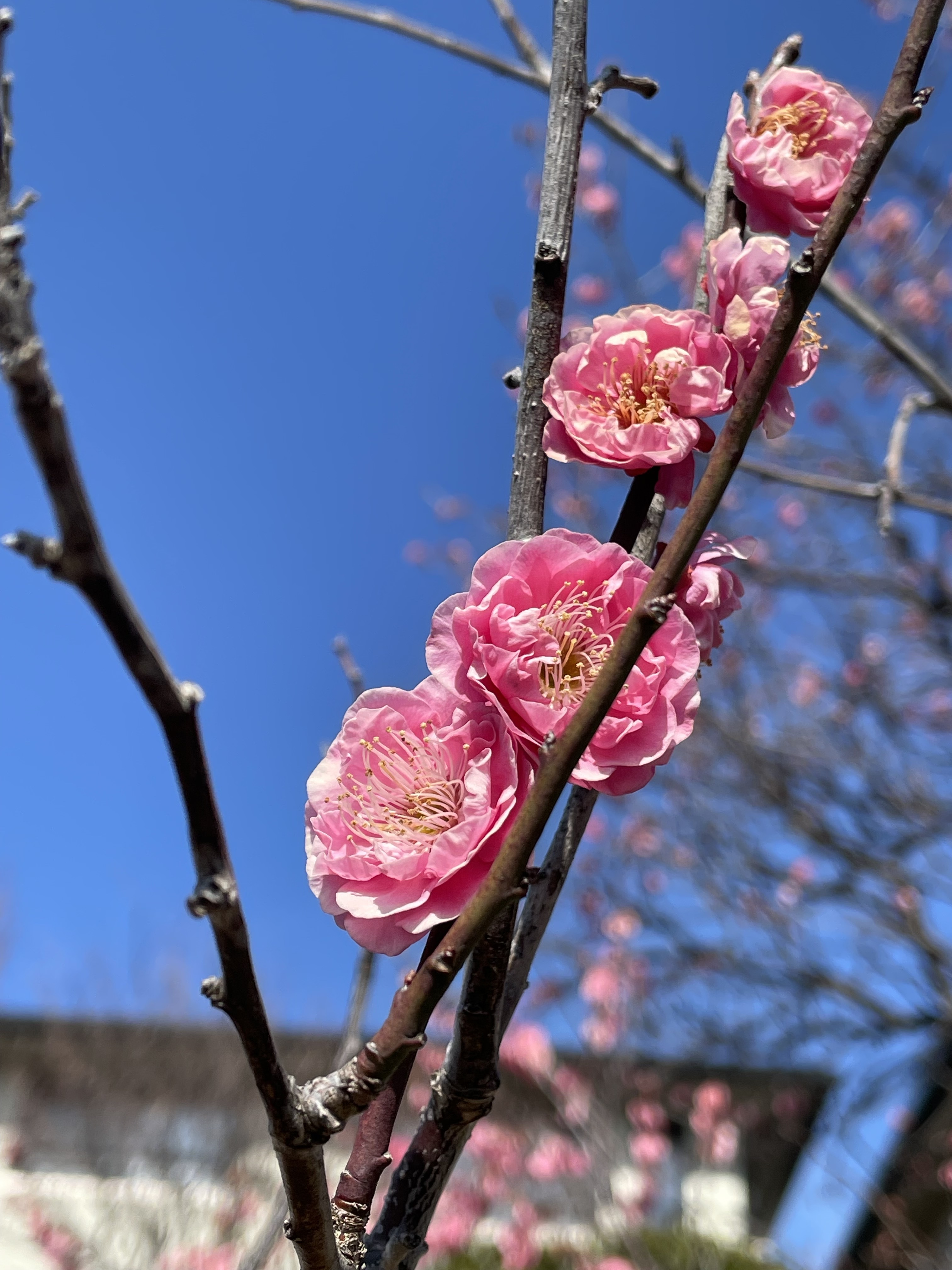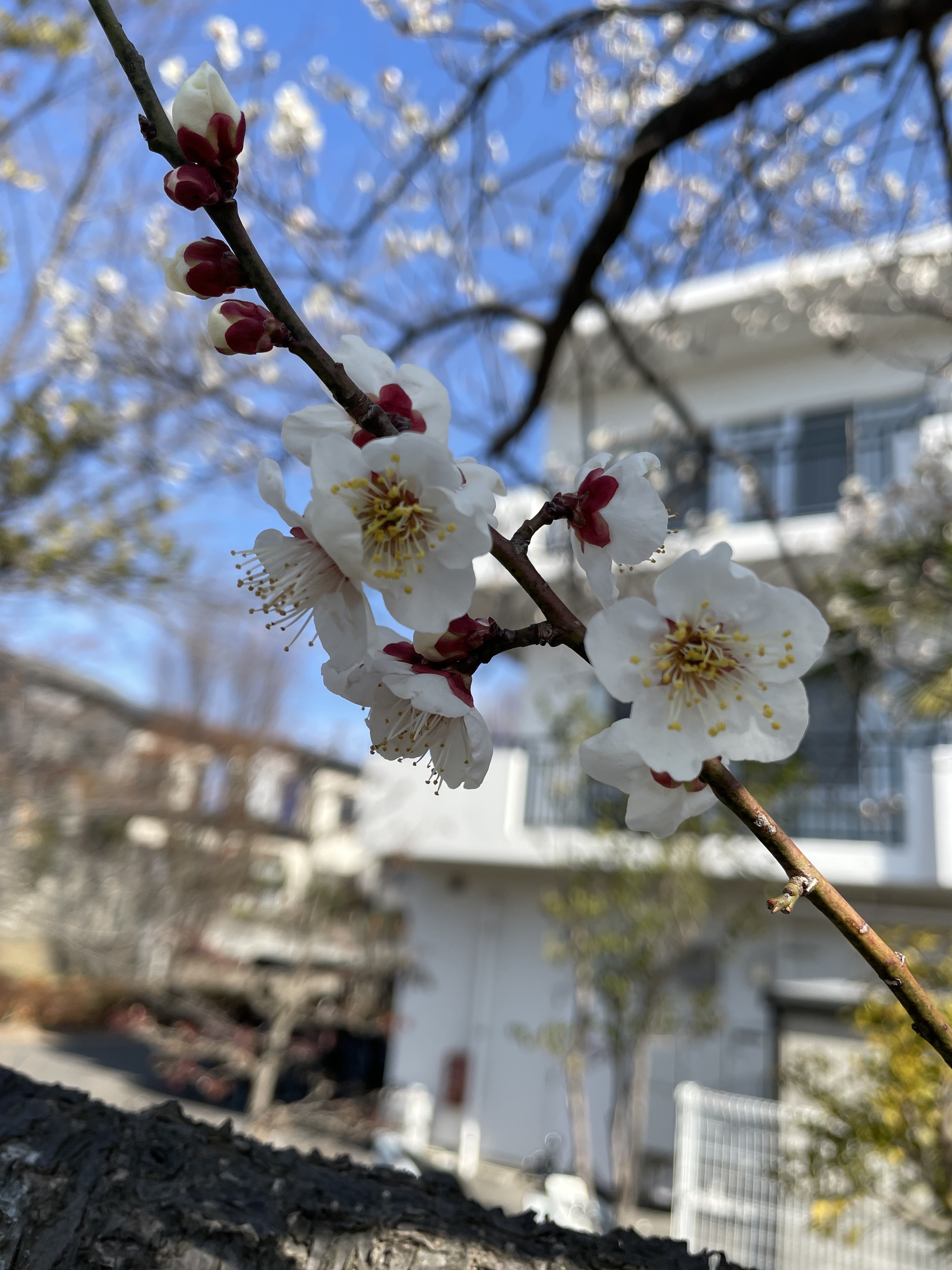 近くの庭先に梅を見つけました。紅梅と白梅です。