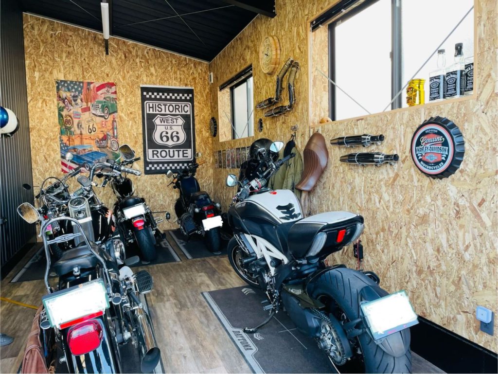 バイク好きの施主様が仲間と楽しめる空間を実現したいという夢がありました。