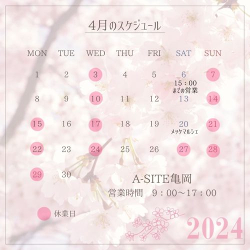さて、本日は4月のお店のスケジュールをお知らせします📅