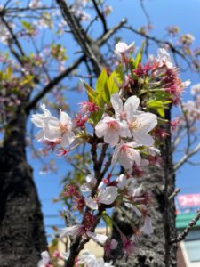 A-SITE新柏店です。季節の移ろいが進んでいます。新柏店の通りにある桜は半分くらい散ってしまいましたが、花弁が最後の美しさを放ち濃いピンク色に。葉っぱとのコラボレーションもこの時期ならです。新緑の季節はすぐそこ。