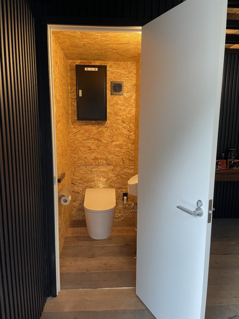 中二階下の空間を利用し、ガレージ内にトイレも設置してあります🚽