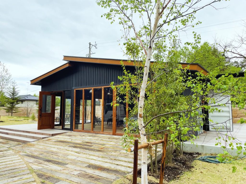 軽井沢にあるこのガレージは、中は内装を施し、社員ミーティングや外部企業様との打ち合わせに使用したりと用途は色々😆