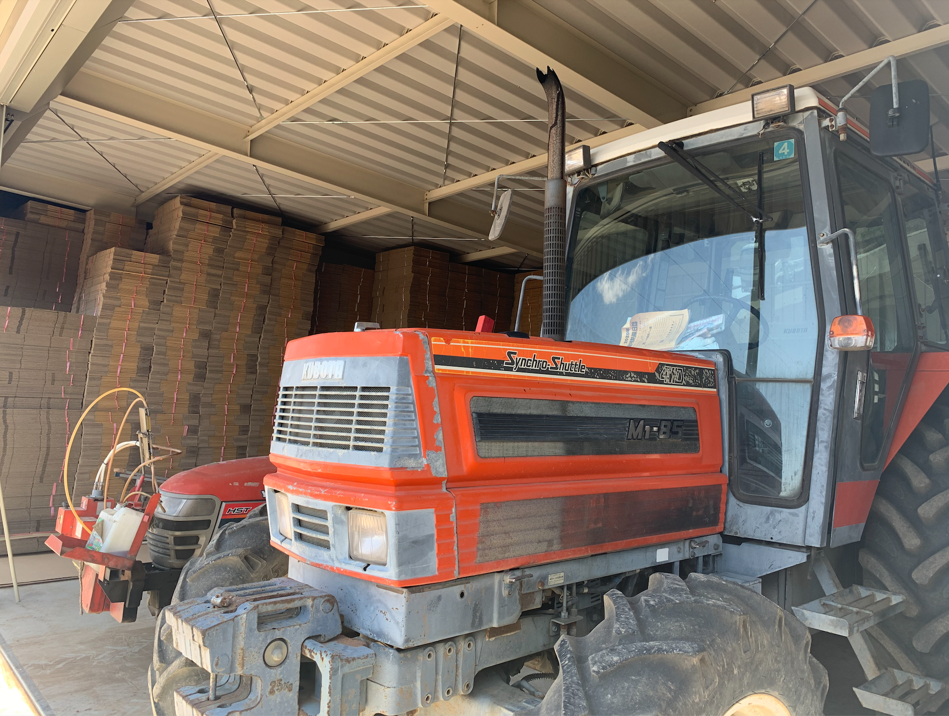 倉庫内は大きなトラクターや段ボールが沢山❗️