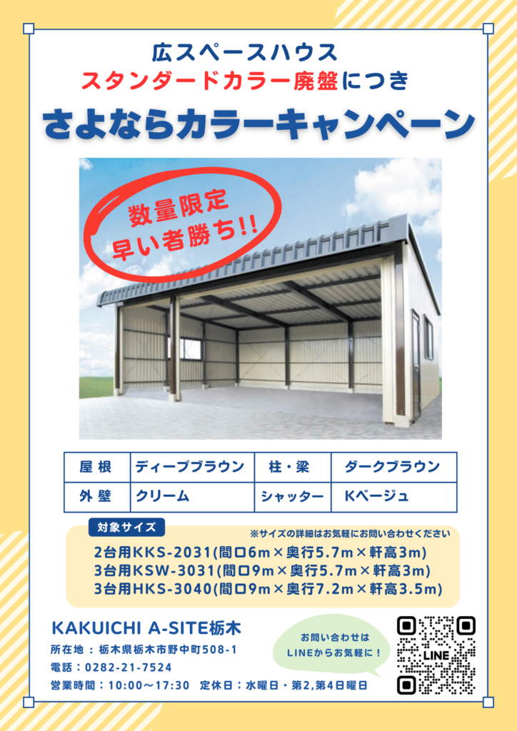 今回は広スぺースハウスのスタンダードカラー及びキャノポートのBカラーが