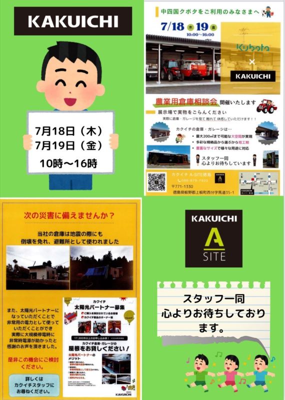 本日は、7月18日(木)19日(金)に開催します、農業用倉庫相談会のお知らせです。
