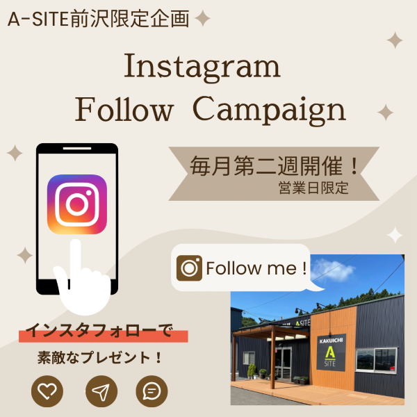 さてカクイチ前沢店では、毎月第2週の営業日にインスタフォローキャンペーンを開催しております。
