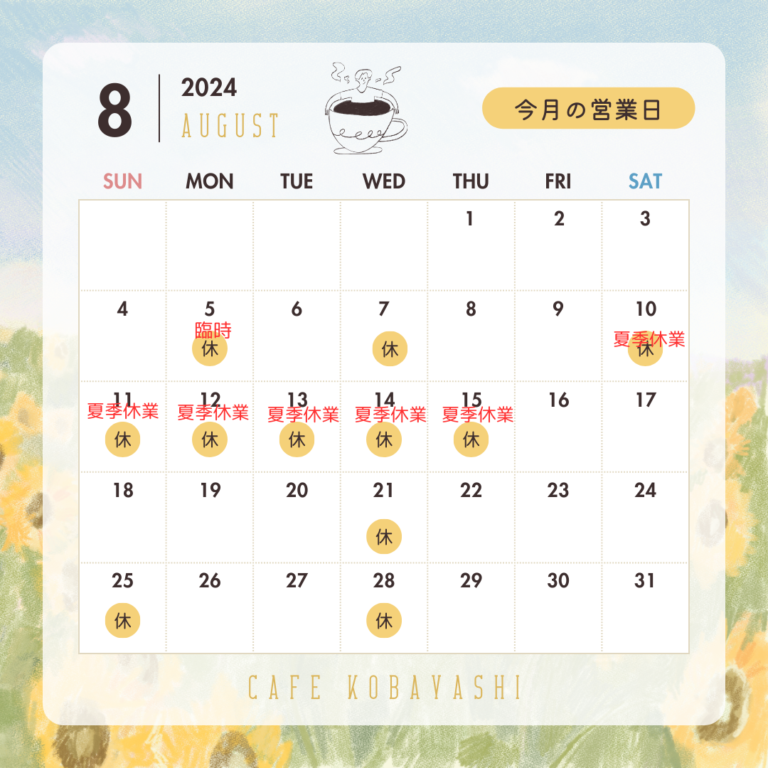 8月は、5日社内研修の為、10日から15日まで夏季休業とさせて頂きます。
