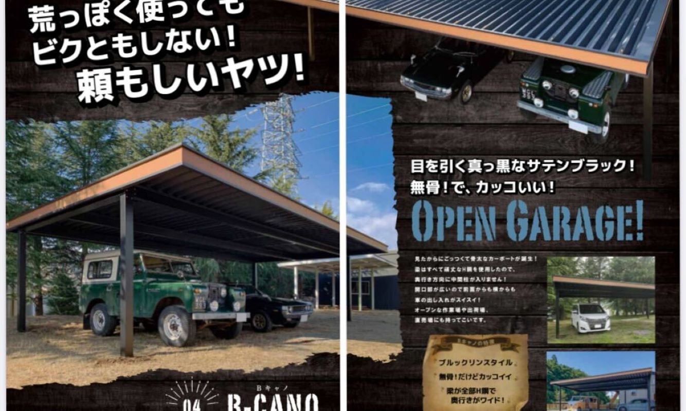 本日ご紹介させていただきますのは当社製品【B-CANO】オープンガレージです!✨