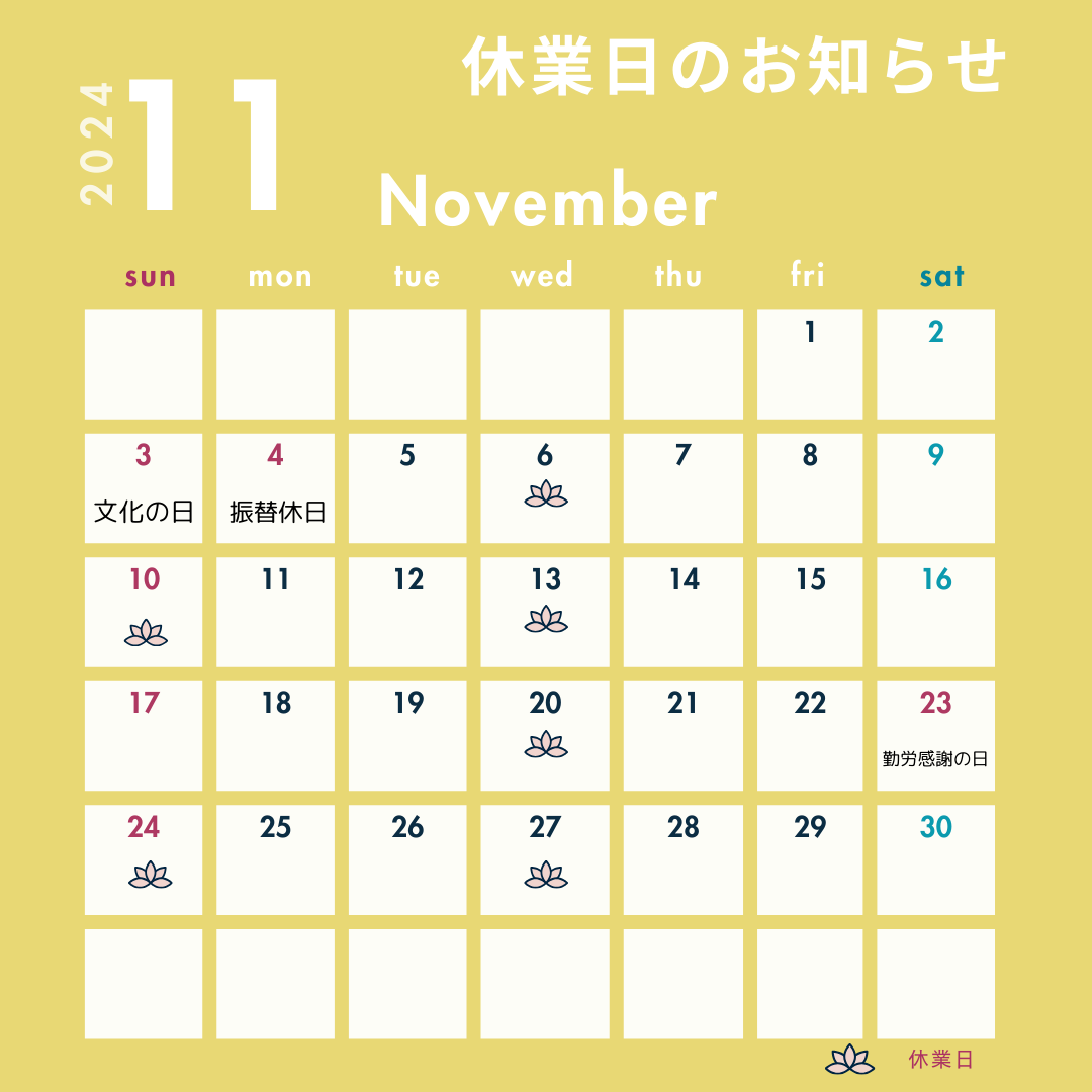 11月の休業日のお知らせです。