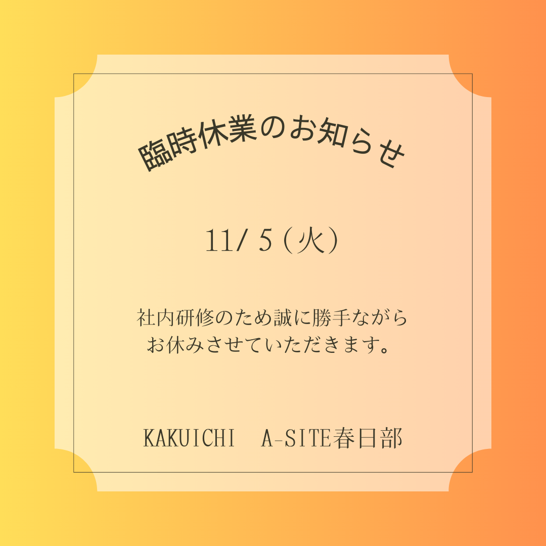 臨時休業のお知らせ KAKUICHI A-SITE春日部 | カクイチ A-SITE