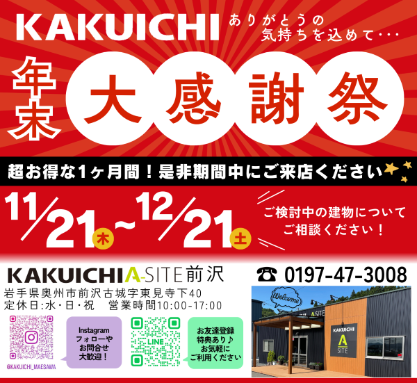 この機会にぜひ、お気軽にカクイチ A-SITE前沢店へご来店くださいませ!🙇♀️
