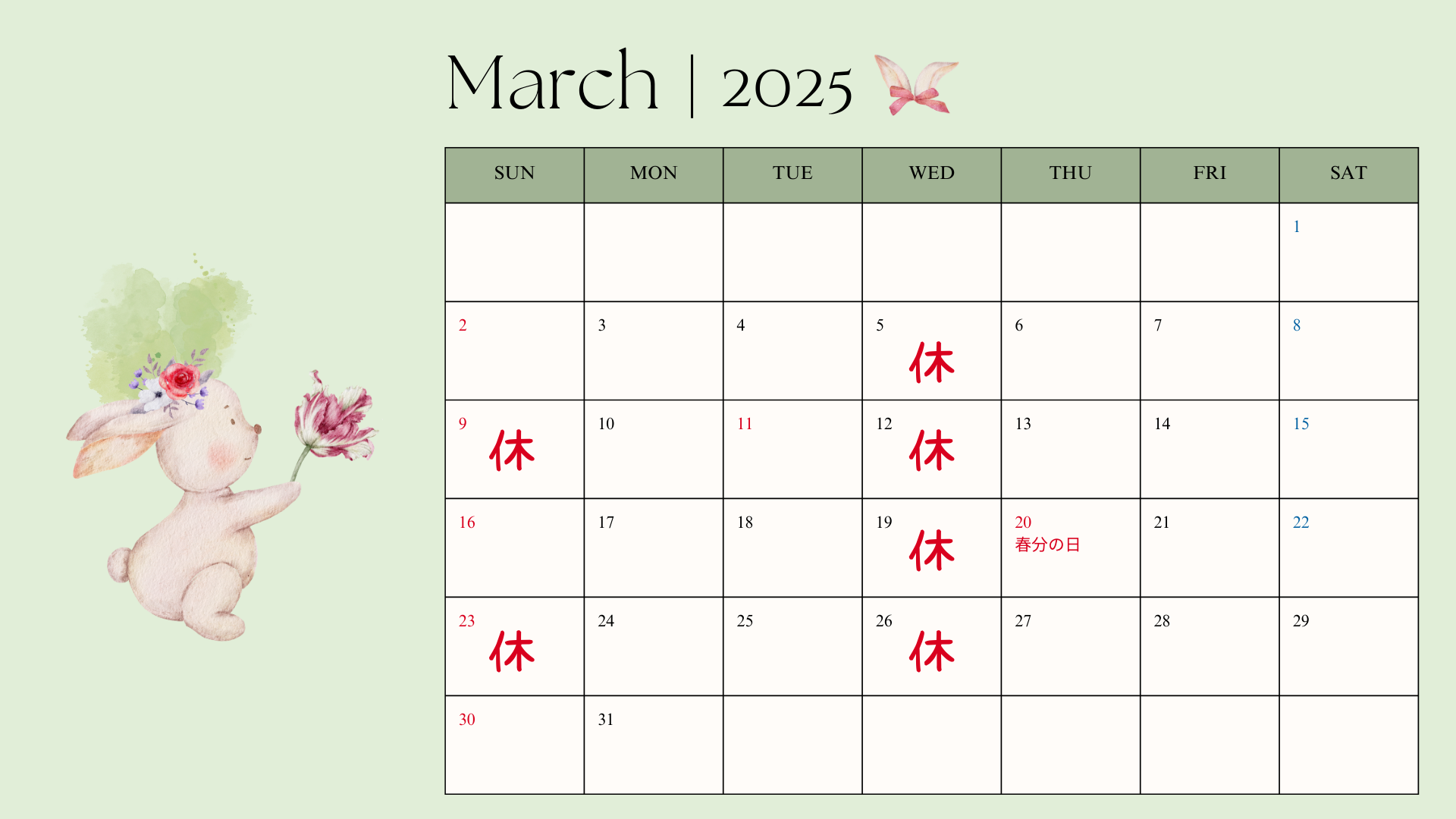 3月の営業日のご案内