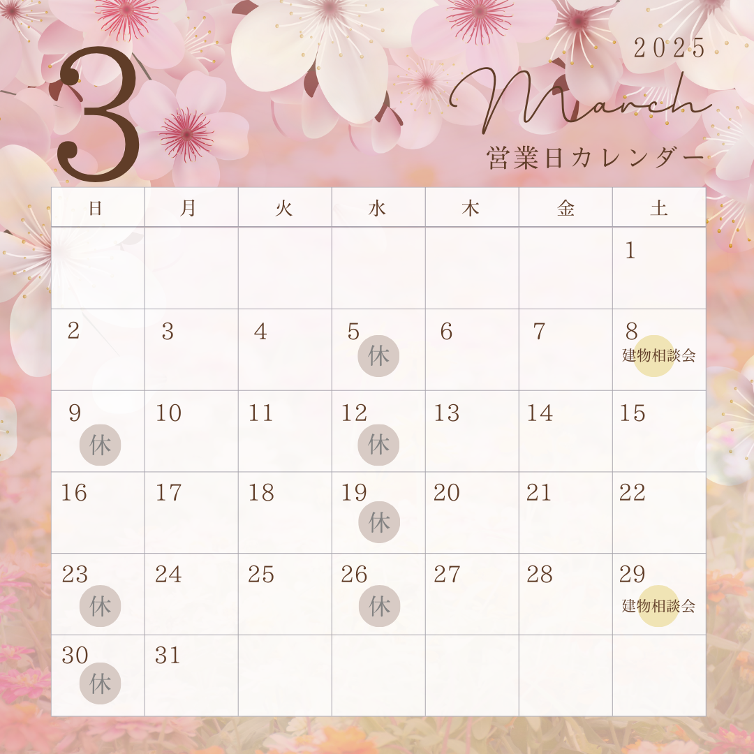 🌸3月の営業カレンダーと「建物相談会」のお知らせです🌸