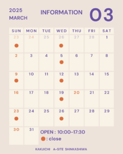 毎週水曜日、第2・4日曜日が定休日となっています。