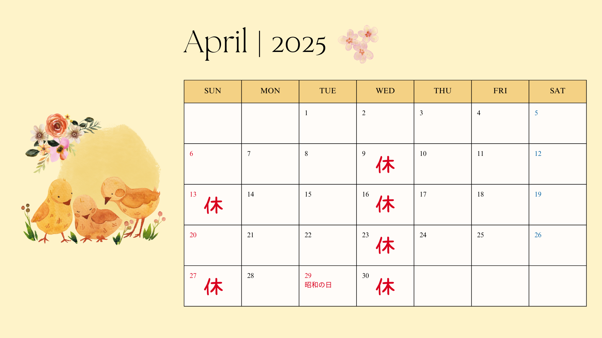 A-SITE鹿島神宮前店の4月の営業日のご案内です。
