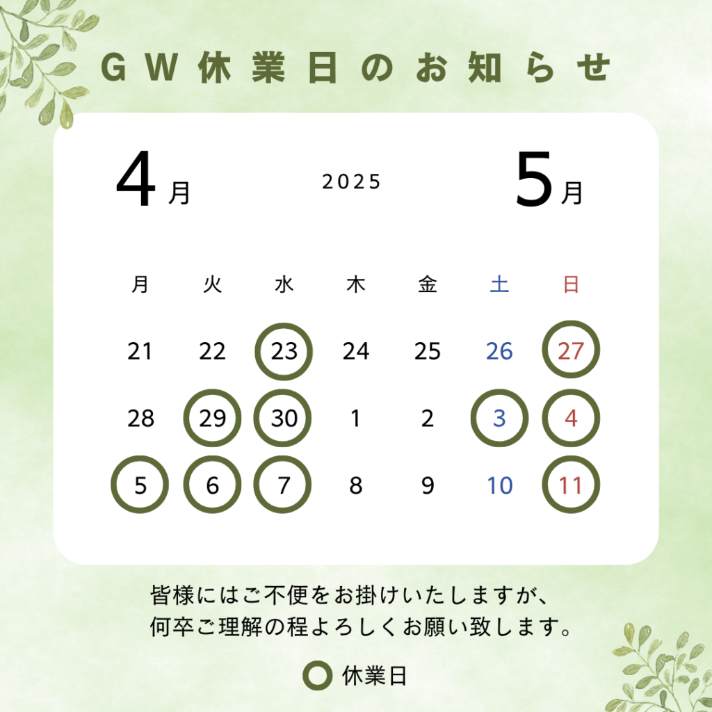 【G.W休業期間のお知らせ】