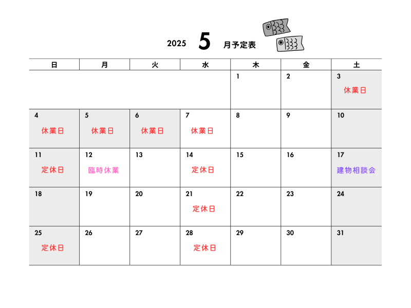 5月営業日のご案内📣