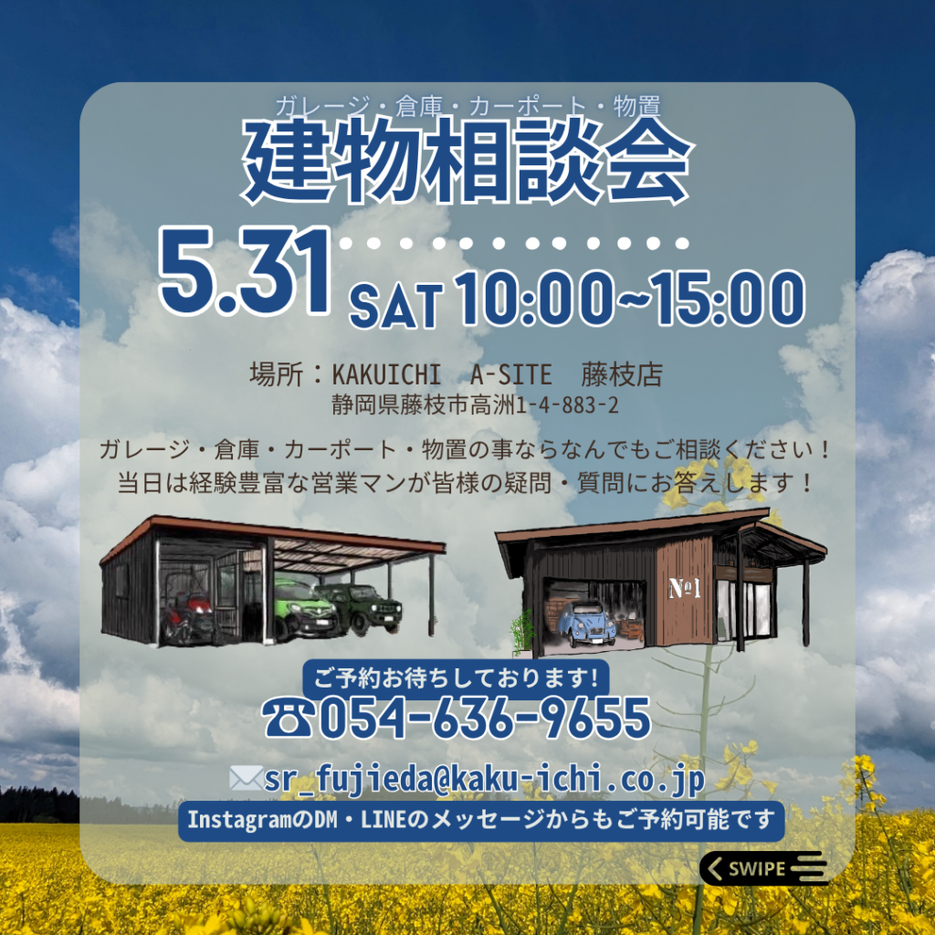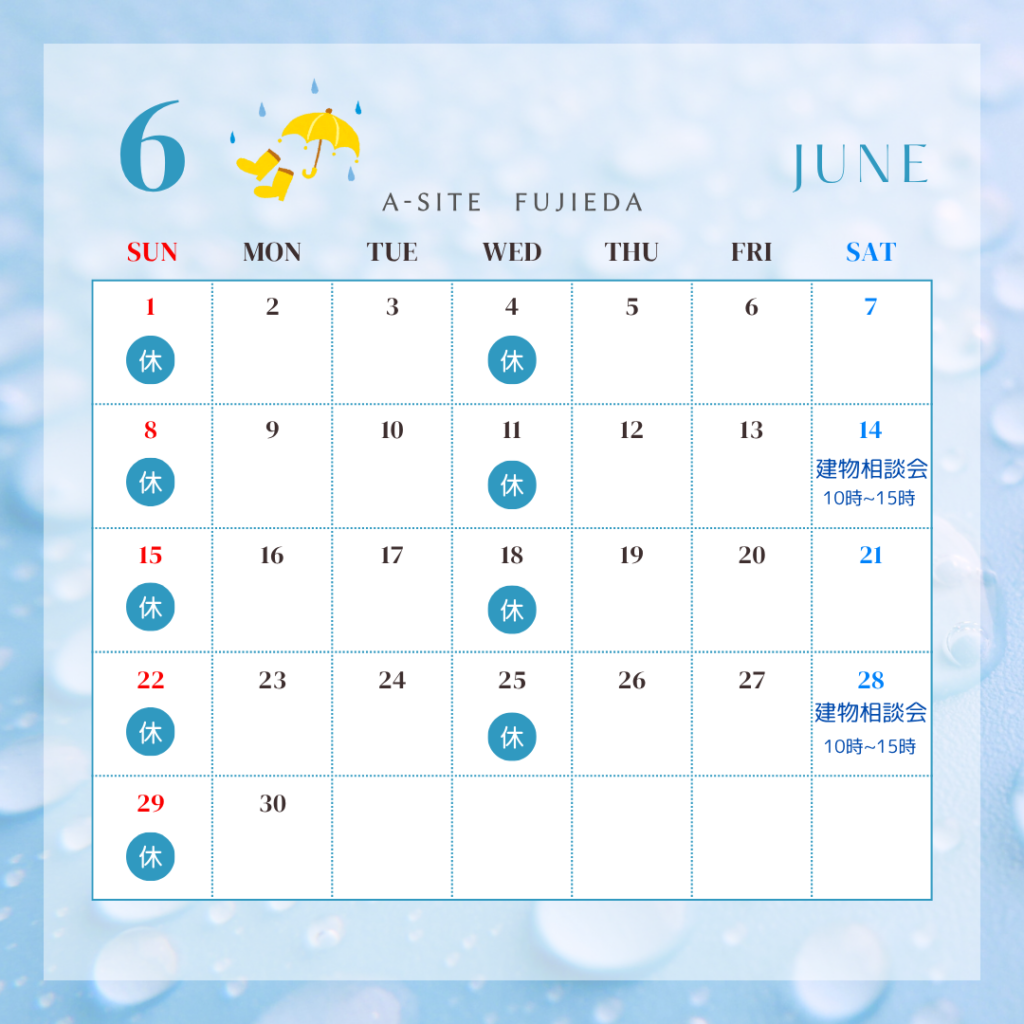 ☔6月の営業カレンダー&5/31「建物相談会」開催!のお知らせ【A-SITE藤枝店】 | カクイチ A-SITE