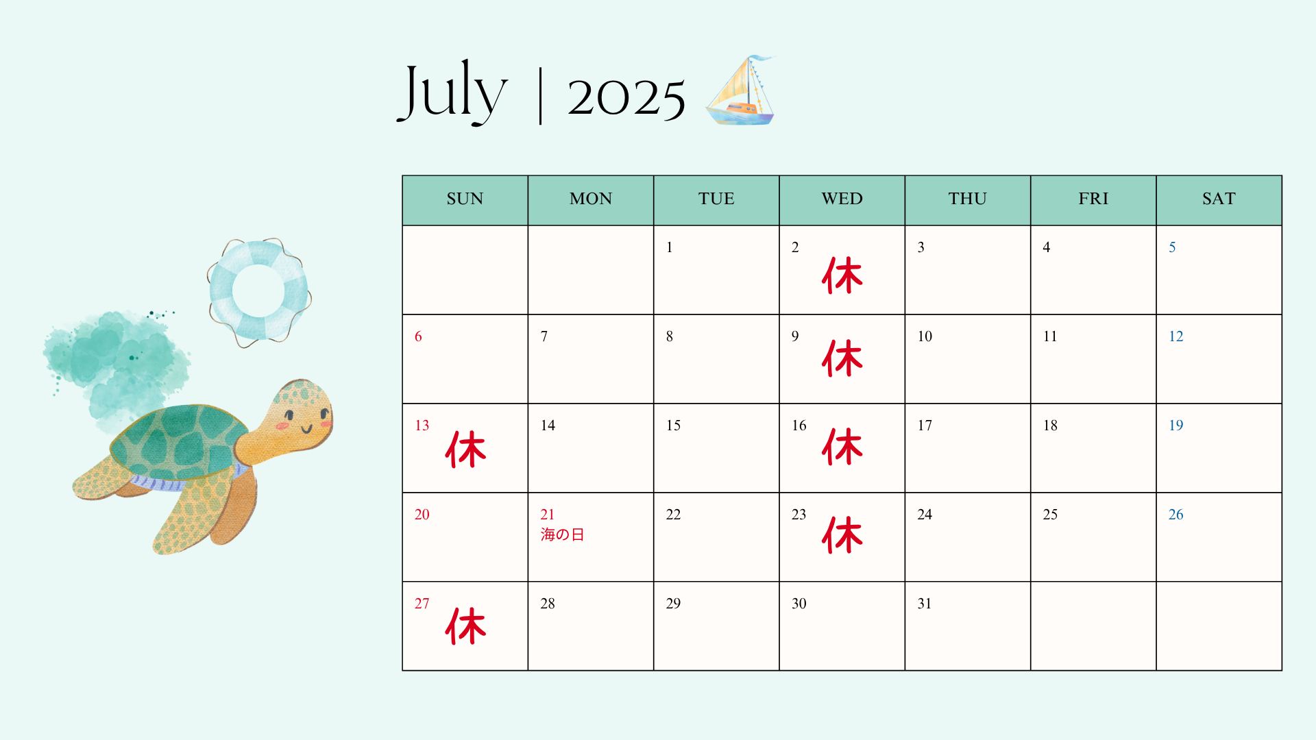 A-SITE鹿島神宮前店の7月の営業日のご案内です。
