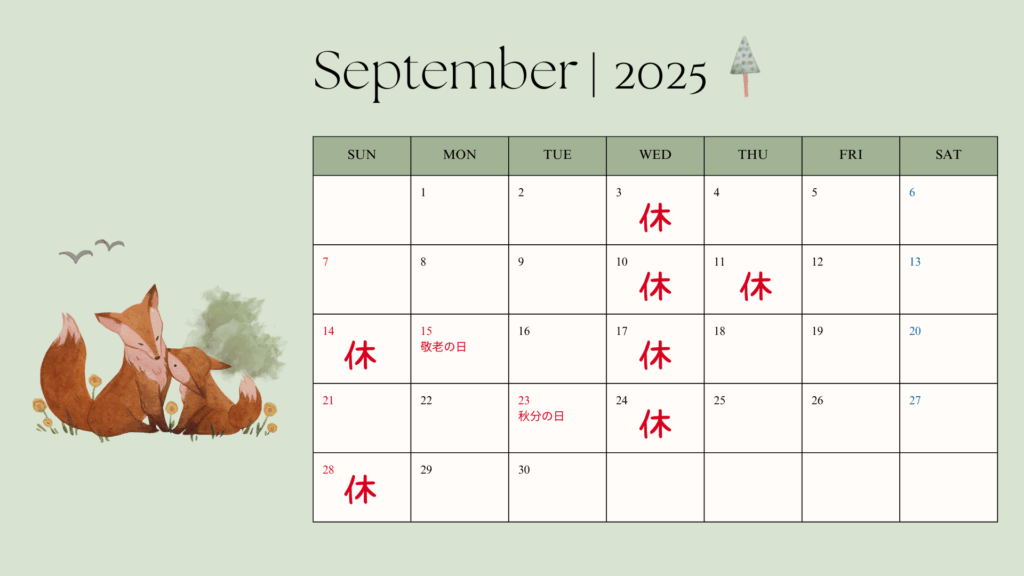 A-SITE鹿島神宮前店の9月の営業日のご案内です。