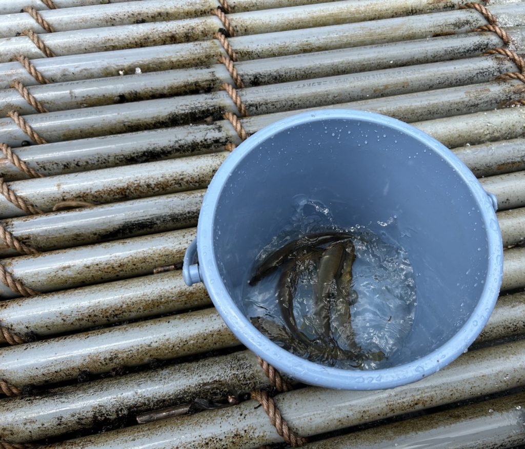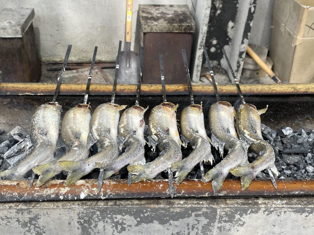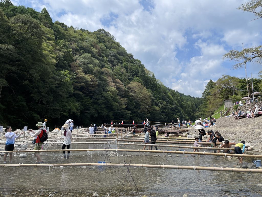 ヤナ場や川の中につくったイケスで、鮎のつかみどりを楽しみました。