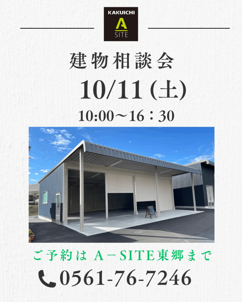 今週末、10月11日土曜日10:00~16:30まで建物相談会を開催します。