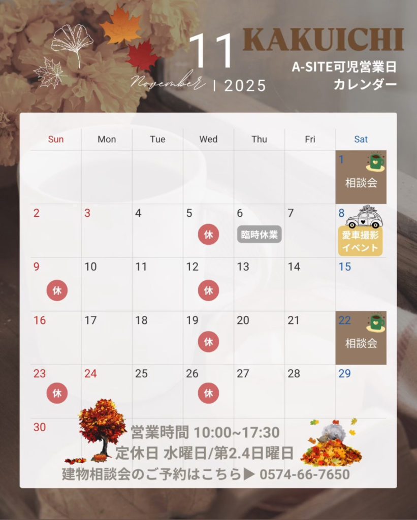 11月営業日カレンダー📅のお知らせです🍁