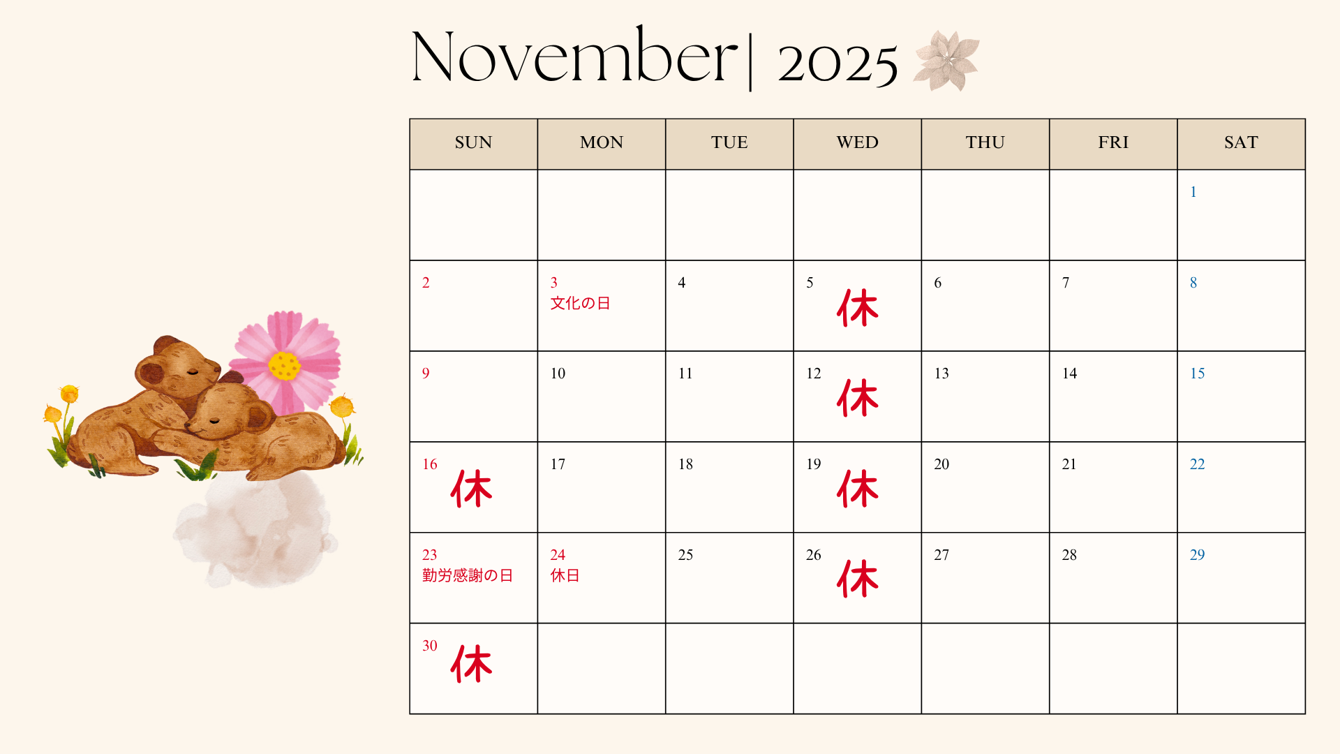 A-SITE鹿島神宮前店の11月の営業日のご案内です。