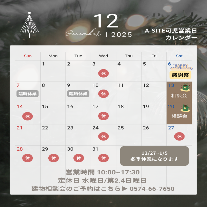 12月営業日カレンダー📅のお知らせです🎄