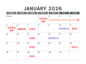 🎍1月営業日のご案内🎍