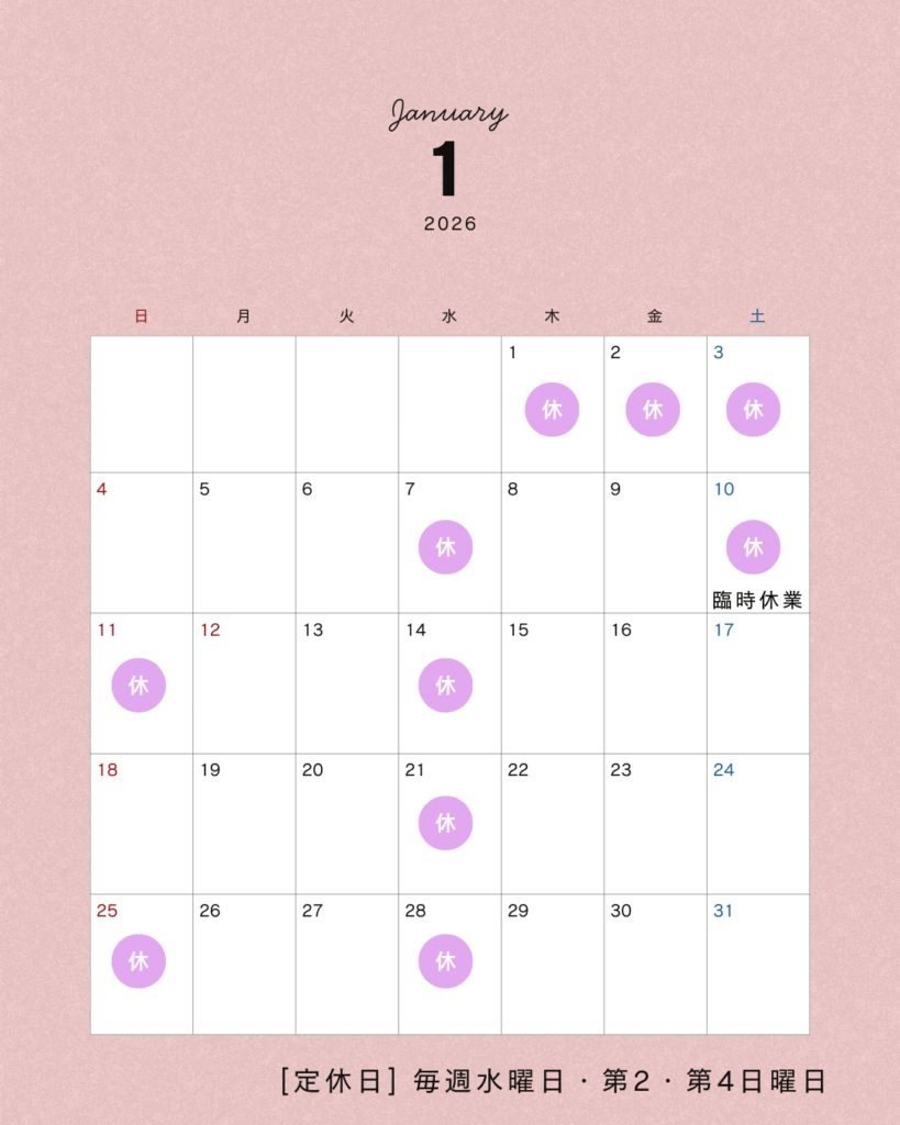 1月の営業日のお知らせ