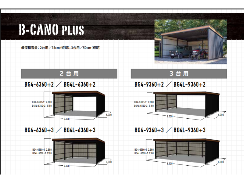 ”カーポートのB-CANO”に壁を貼ったタイプの”B-CANO PLUS”を