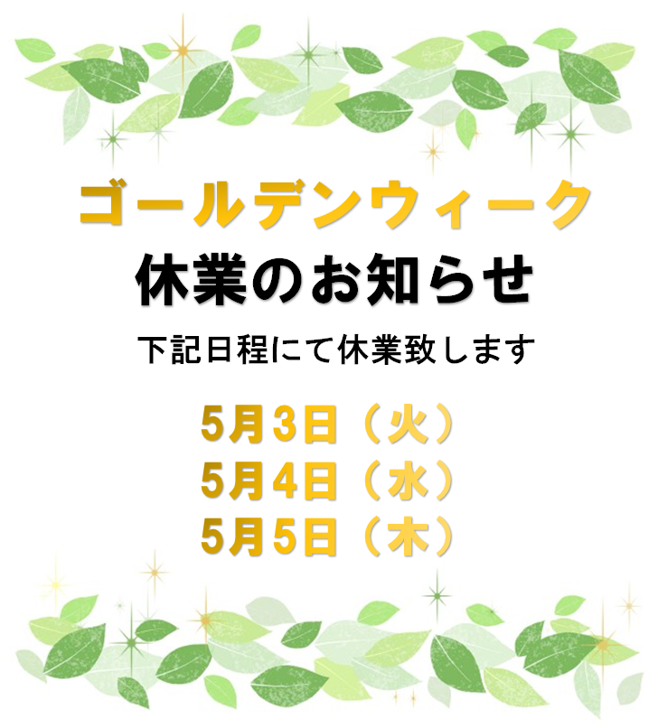 5/6(金)より通常営業をさせて頂きます。 今後とも、より一層のご愛顧をお願い致します。