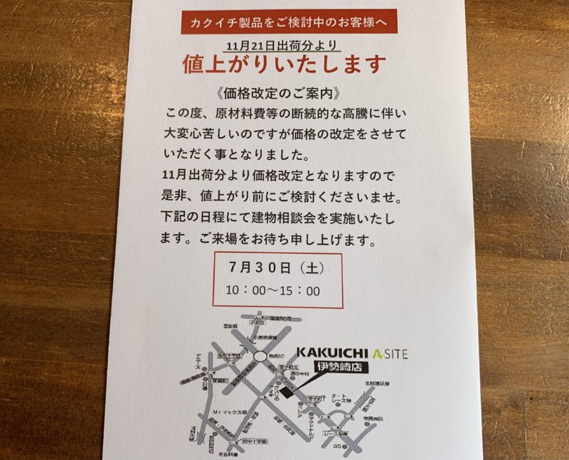 大変に心苦しいお知らせです・・m(__)m 令和4年11月21日出荷分より価格の改定をさせていただくことになりました。