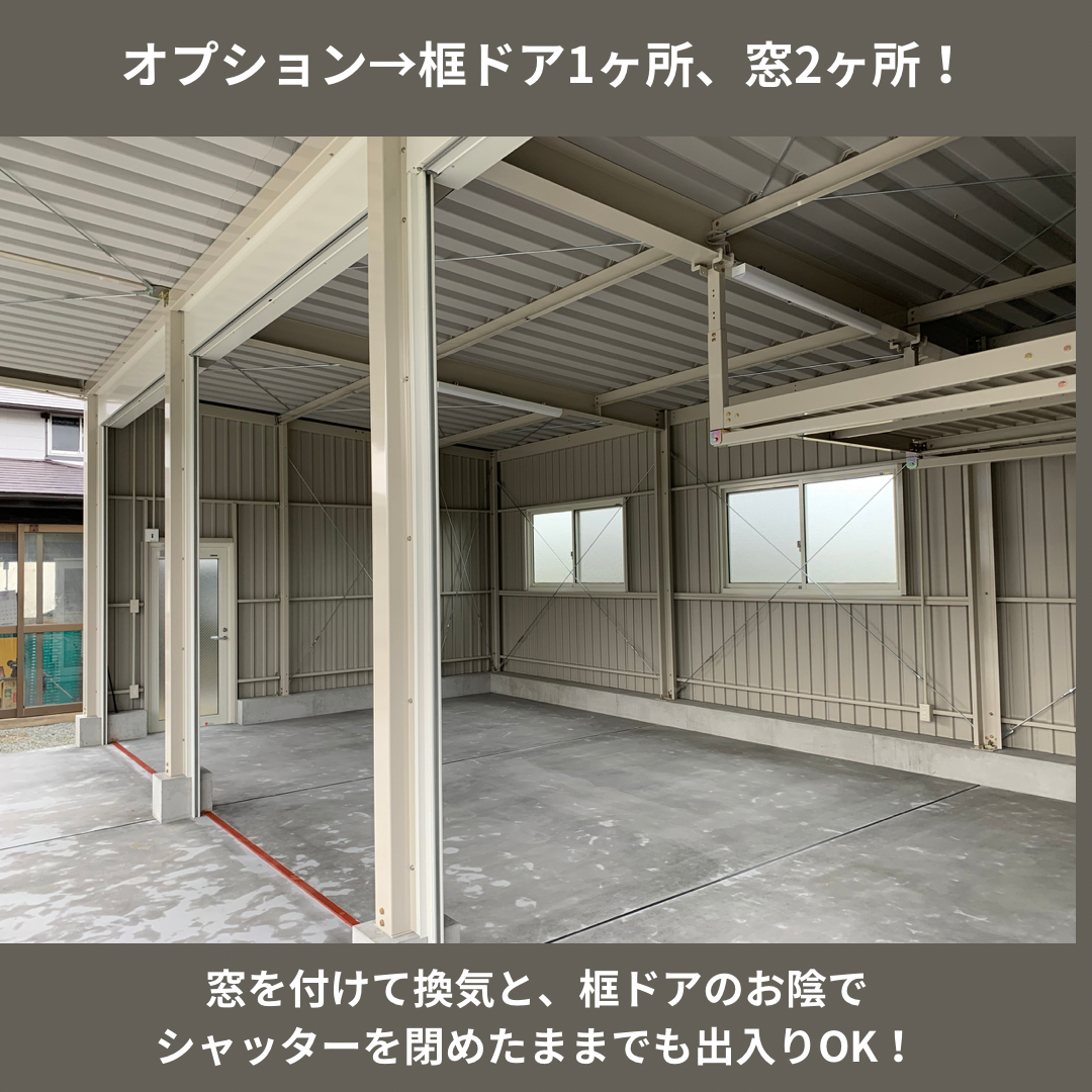 今回は広スペースハウスKKS−3025 オプションの屋根延長・窓・框ドア・デカ蔵付き!!