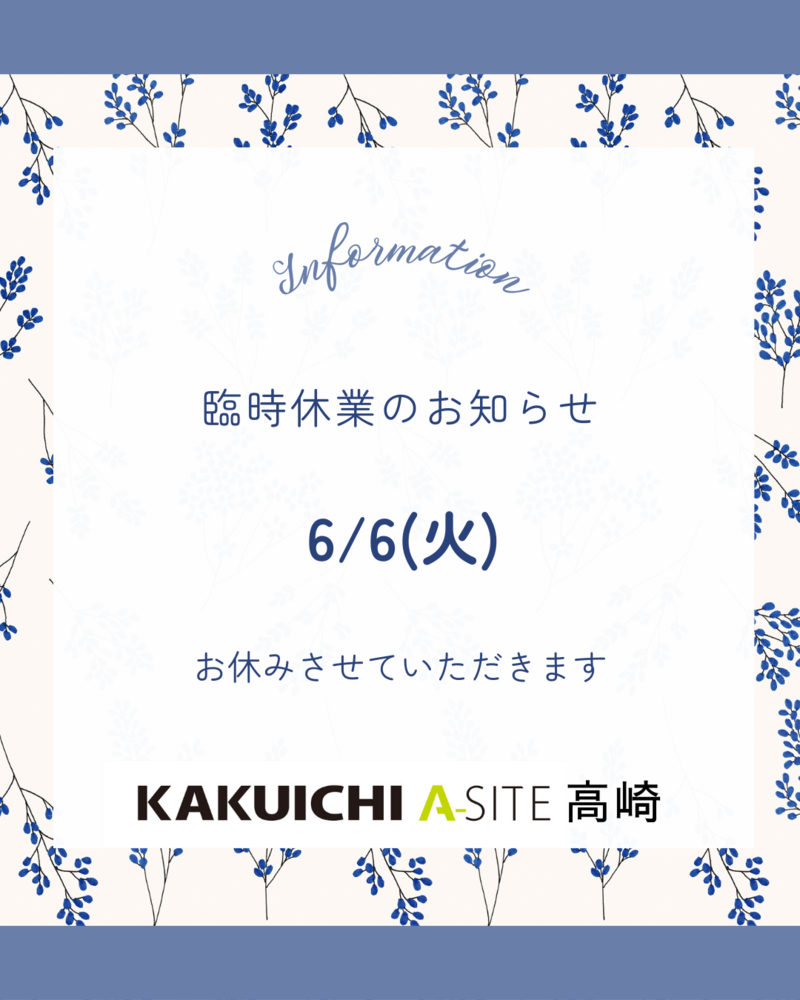 社内行事のため6/6㈫を店休日とさせていただきます。