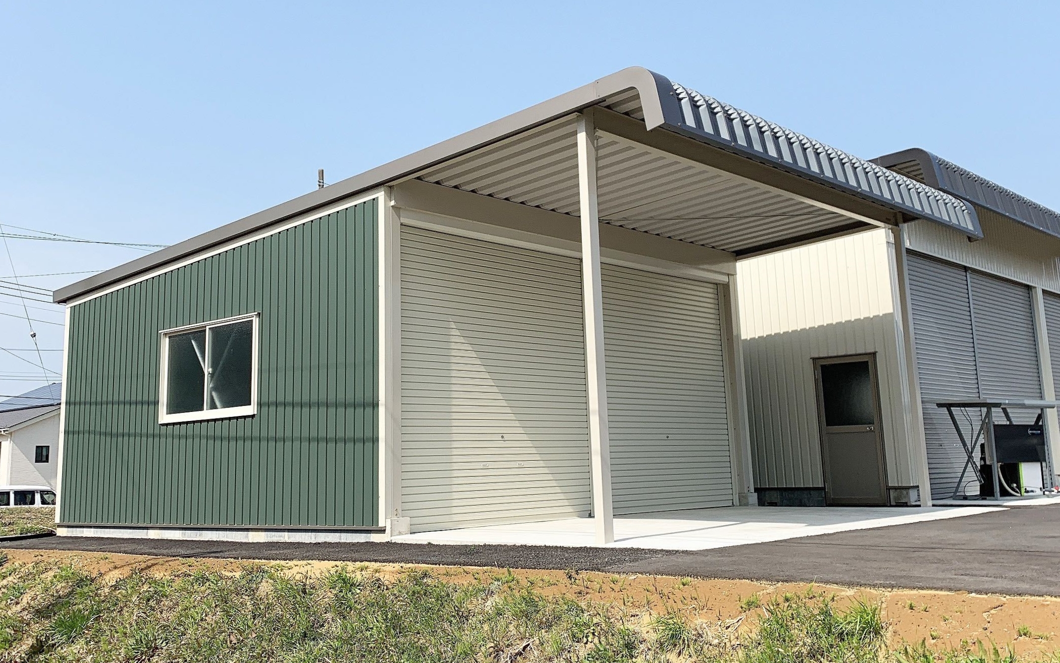 軒髙:3m 間口:6m 奥行:5.7m 色:グリーンタイプ オプション:屋根延長、窓