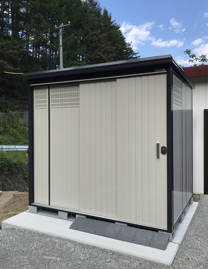 地区で使用の物置を設置させて頂きました。 庫内に風を通して熱気、湿気を逃したいという( ͡° ͜ʖ ͡°) ご要望にお応えして換気パネルのオプションを付けました✨
