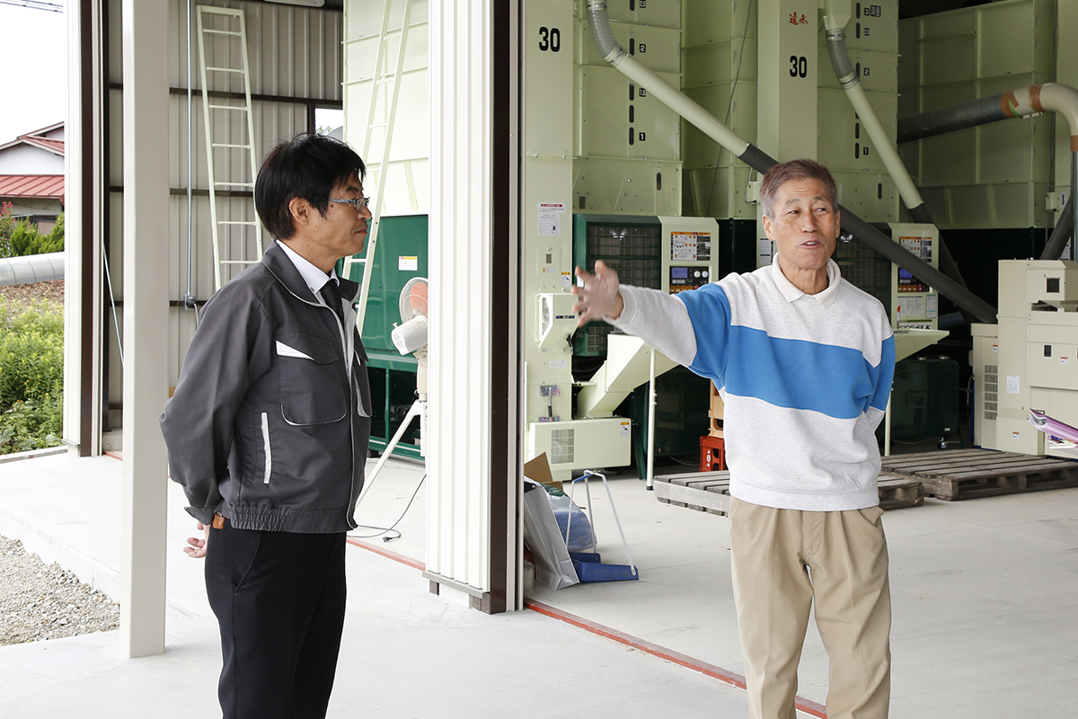 地域の皆さんで営農組合を立ち上げ、農機具と乾燥機収納に倉庫を新築されました。