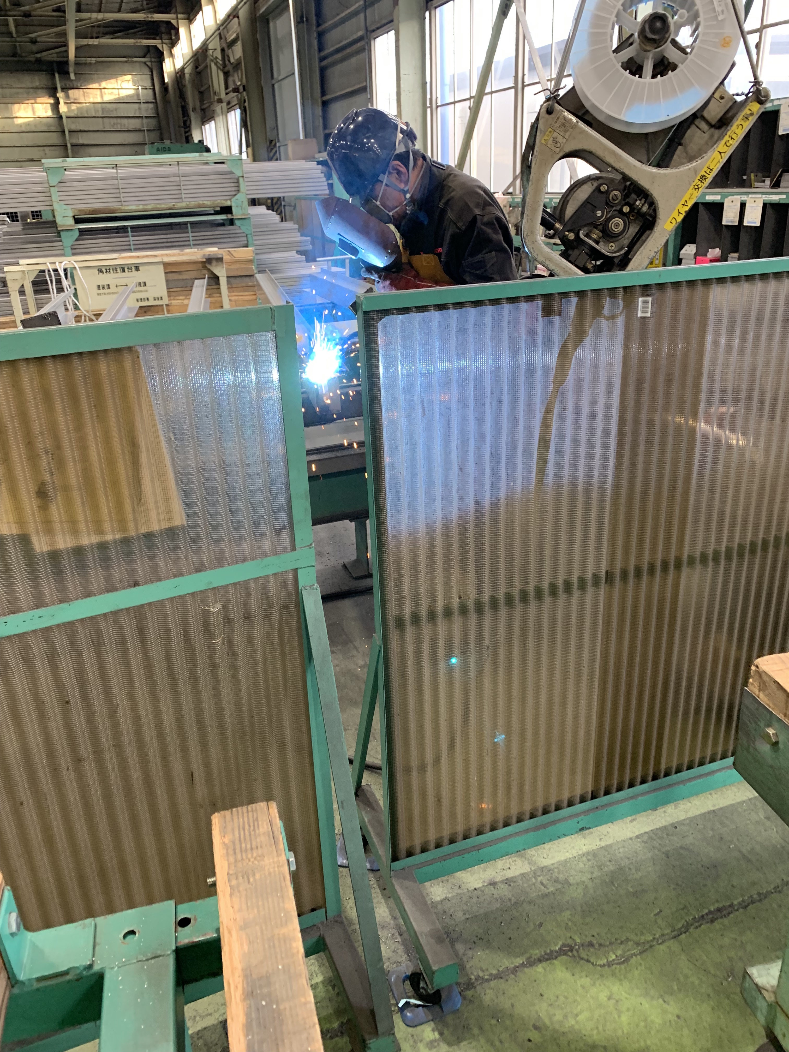 工場では約90名程の方が働いており、各部署で役割が分かれていています。設計→プレス→溶接→塗装→梱包のように順番に工程が進んでいき、各工程で不備があるとその都度弾かれます。機械では判断できないような細かい部分もプロの職人が細部まで気を使いものづくりに魂を込めています。