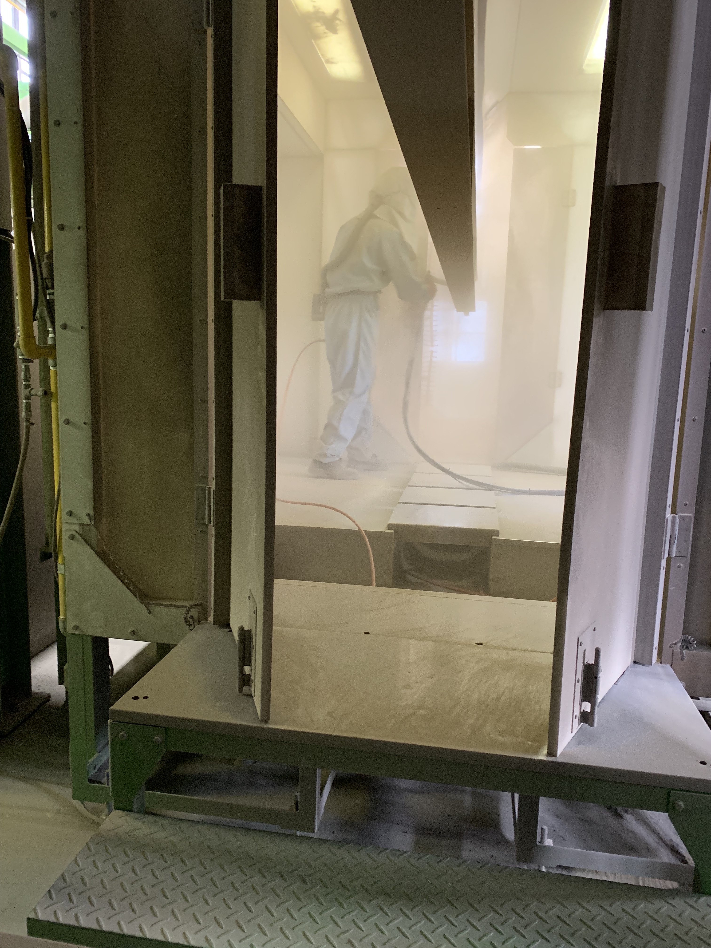 そして何と言ってもカクイチは錆びない柱が最大の強みですよね。特別に秘密を見せてもらいました!何回も洗う工程でしっかりと油や汚れを落としたのちに複数回塗装を重ねるのですが、粉を被っている方もいました。一切妥協の無い作業する姿に感動しました。「お客さんが喜んでくれる姿を想像すると何でもできてしまうよ」カッコいいです!