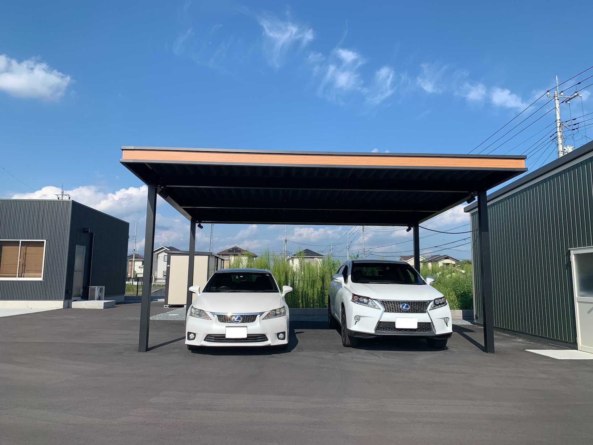開口部が広いので前面からも横からも車の出し入れが可能です。